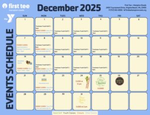 The parking lot and driveway of First Tee — Hampton Roads will be repaved Wednesday, November 19–Monday, November 24. During this time, the parking lot and driveway will be unavailable. Parking will be available on the marked grassy area just inside our driveway or at the back corner of Virginia Beach National parking lot.